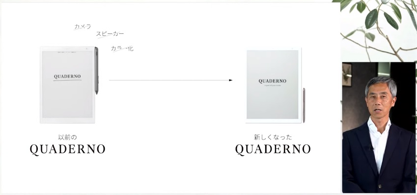 そして、発売から2年半のあいだにユーザーから得たフィードバックをもとに、カラー化やカメラ搭載、ブラウザ機能などの多機能化に進むのではなく、「書きやすさ・読みやすさ」「手軽に持ち運べる軽さ・薄さ」といったクアデルノの本質を追求することを目指し、今回の新モデルが誕生したとのこと。