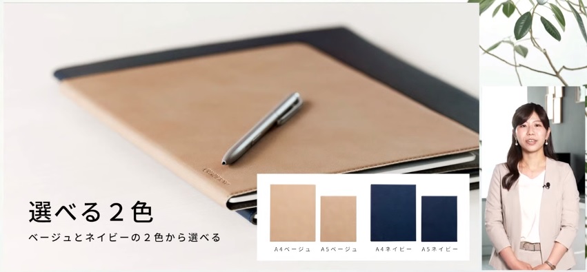 アクセサリとして、ネイビーとベージュの2色から選べるカバーを用意。A4/A5用の2種類をラインナップしています。