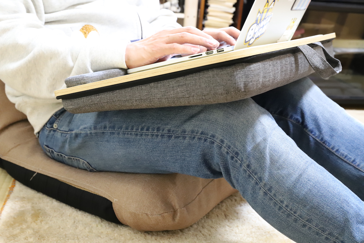 ならば、ひとまず「デスクそのものを膝に乗せちゃう」のが、解決策としては手っ取り早いのではないだろうか?