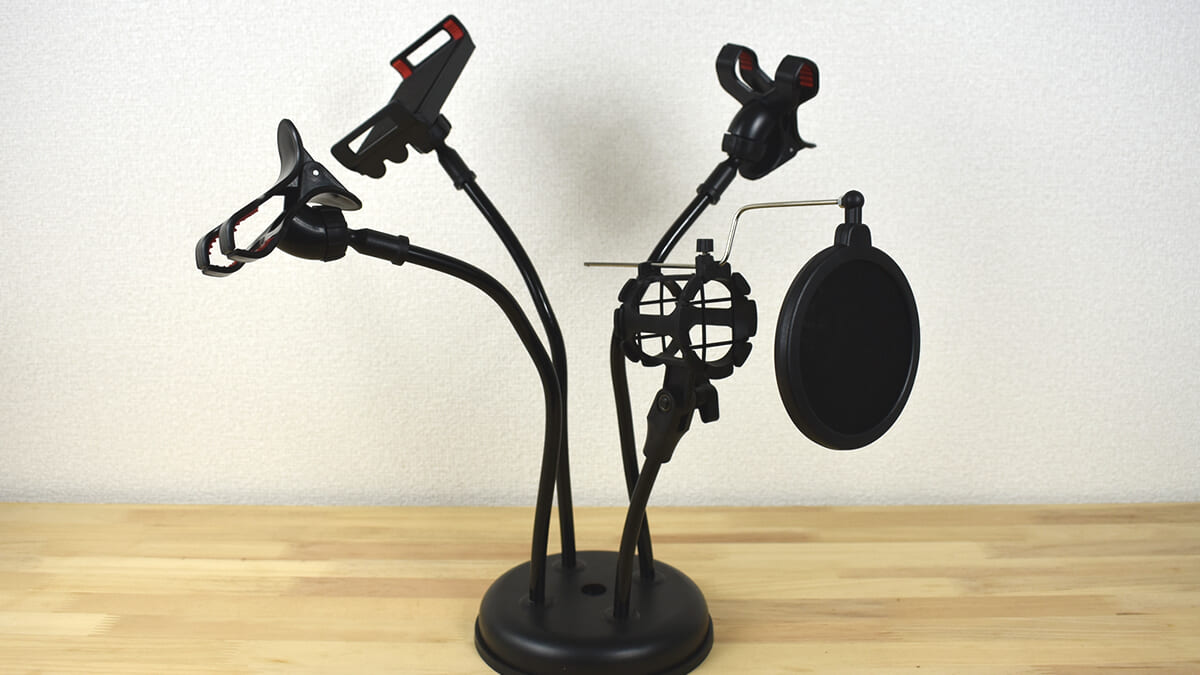 特に注目したいのはマイクホルダー。ポップガードをつけることでノイズを軽減でき、画面だけでなく音質にもこだわって配信できますよ。さらに呼吸による湿気から大切なマイクを守る役割も果たします。これ1つで撮影から音響まで全てのクオリティーを向上してくれる、まさにその名の通り「ライブスタジオ」のようなアイテムでした。