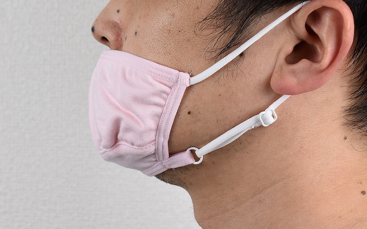 同商品のサイズは、紐を含めない状態で約9(縦)×18cm(横)。一般的なマスクと比較すると小さく見えますが、鼻下から口周りを覆って装着するタイプのため問題ありません。柔らかい生地で伸びが良く、アジャスター付きのため紐の長さも調節可能。無理なく顔にフィットさせることができます。
