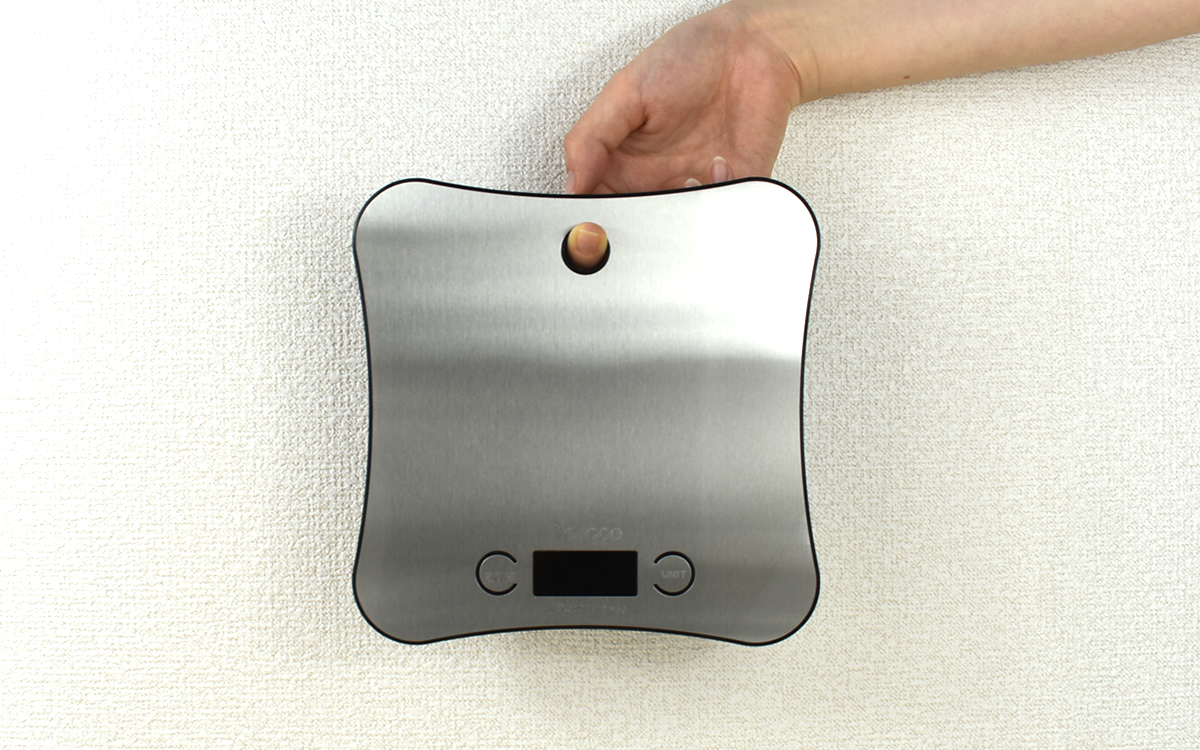 料理にこだわるほど欠かせない調理器具ですが、種類が増えるとキッチン回りがごちゃつきがち。そこでオススメしたいのが、TOFOCOの「デジタルキッチンスケール」です。同商品はフラットな薄型タイプの計量器。Amazonでも星4・5の高評価が8割を超えており、「薄いしフックに掛けられる穴もついているので邪魔にならなそう」「メタリックな見た目は清潔感があってかっこいい!」と注目を浴びていました。