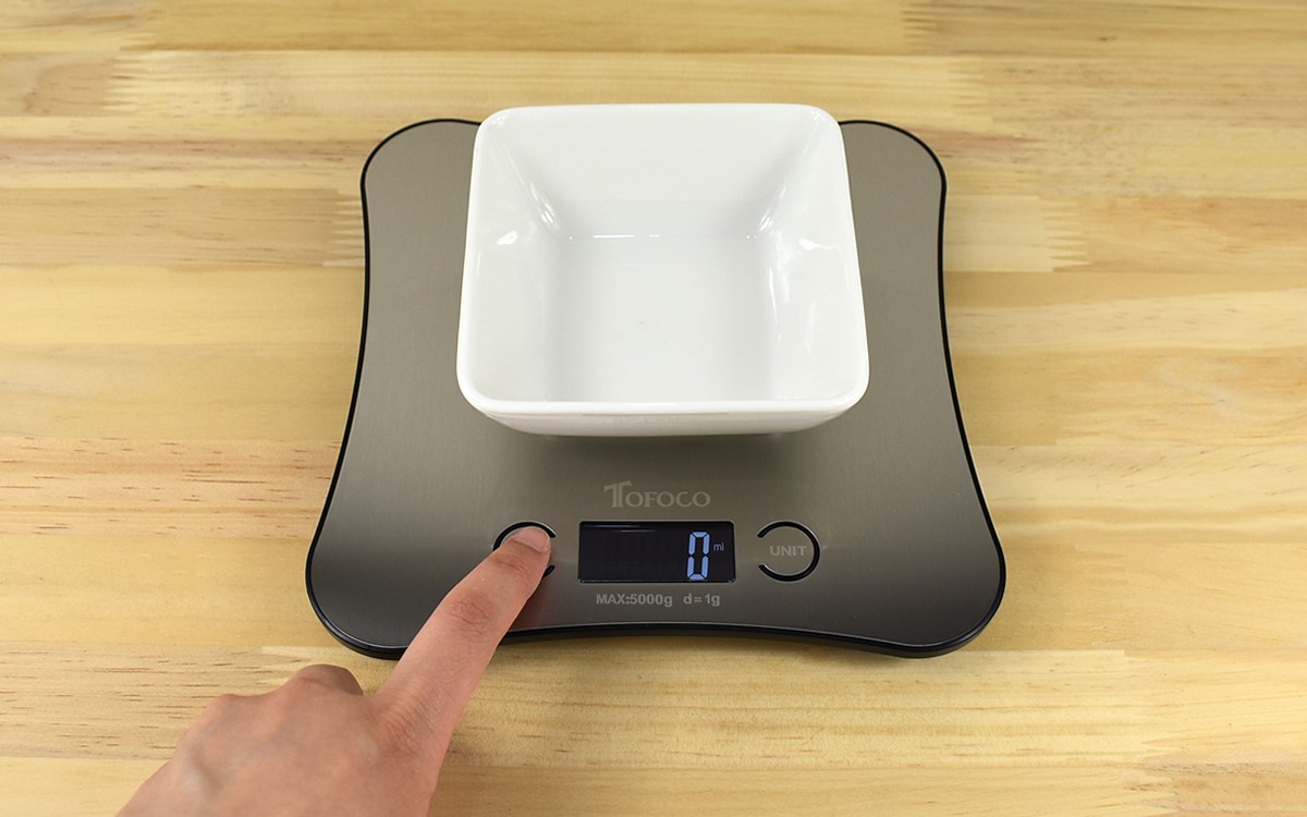 また、「g」以外に「ml」「lb/oz」「oz」と様々な単位に切り替えられるのもうれしいポイント。ボタンを押すだけで、瞬時に量りたいモノに合わせた単位を選択できます。特に「ml」で計量できるのは、料理をするときに液体を使うことも多いので、かなり便利。分かりやすい単位で計測し、よりスムーズに調理を進められますよ。