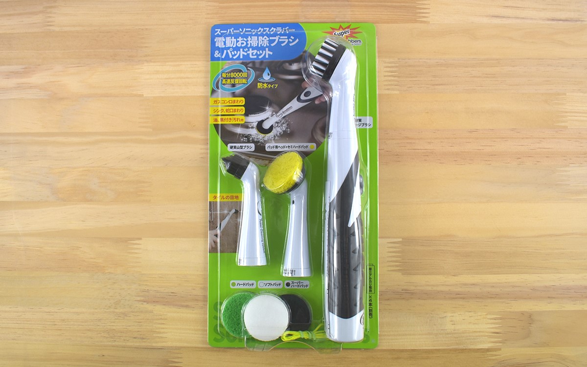 キッチンの焦げつき汚れは、力を込めて磨いても全然落ちなくて一苦労……。もっと掃除が捗るアイテムはないものかと悩んでいた時、東急ハンズで「スーパーソニックスクラバー 電動お掃除ブラシ&パッドセット」(2000円/税別)を見つけて購入することに。