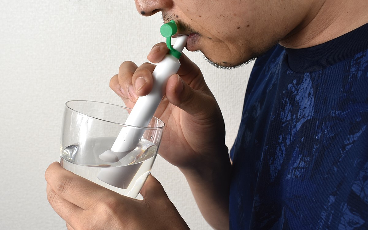 mizu-QとAQUAQUを併用して飲むことができるのは、川・池・プールの水やお風呂の残り水。使い方は至ってシンプルで、たとえば川の水など殺菌されていない水をコップに入れて飲む場合は、AQUAQUを混ぜて除菌してからmizu-Qで吸い上げます。水道水を飲む場合はmizu-Qをそのまま直接入れて吸うだけ。