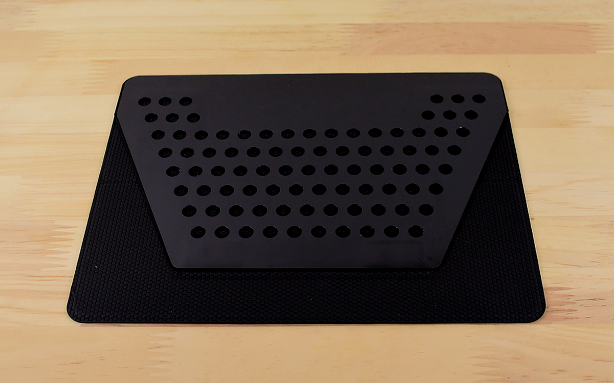 同商品は一見ただのシートにしか見えませんが、ノートPCに装着して変形させることでスタンドに早変わり。使い方はとってもシンプルで、PCの底面に粘着部分をつけるだけです。