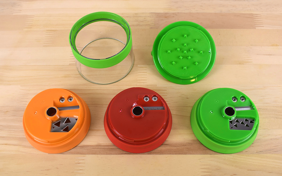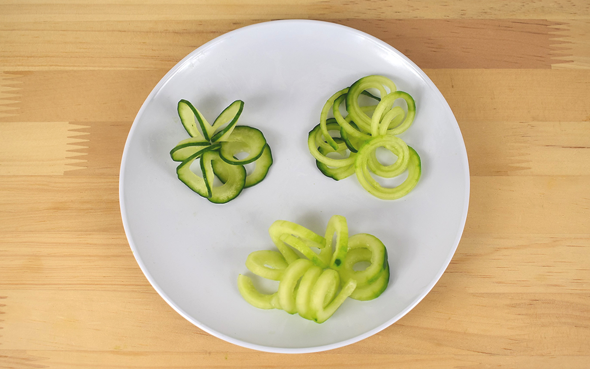 全部で3種類の刃があり、3mm角・6mm角・リボン状と異なる形状のカッティングが可能。同じ野菜でも切る形によって違った食感を楽しめるので、料理のマンネリ化対策にも役立ちます。
