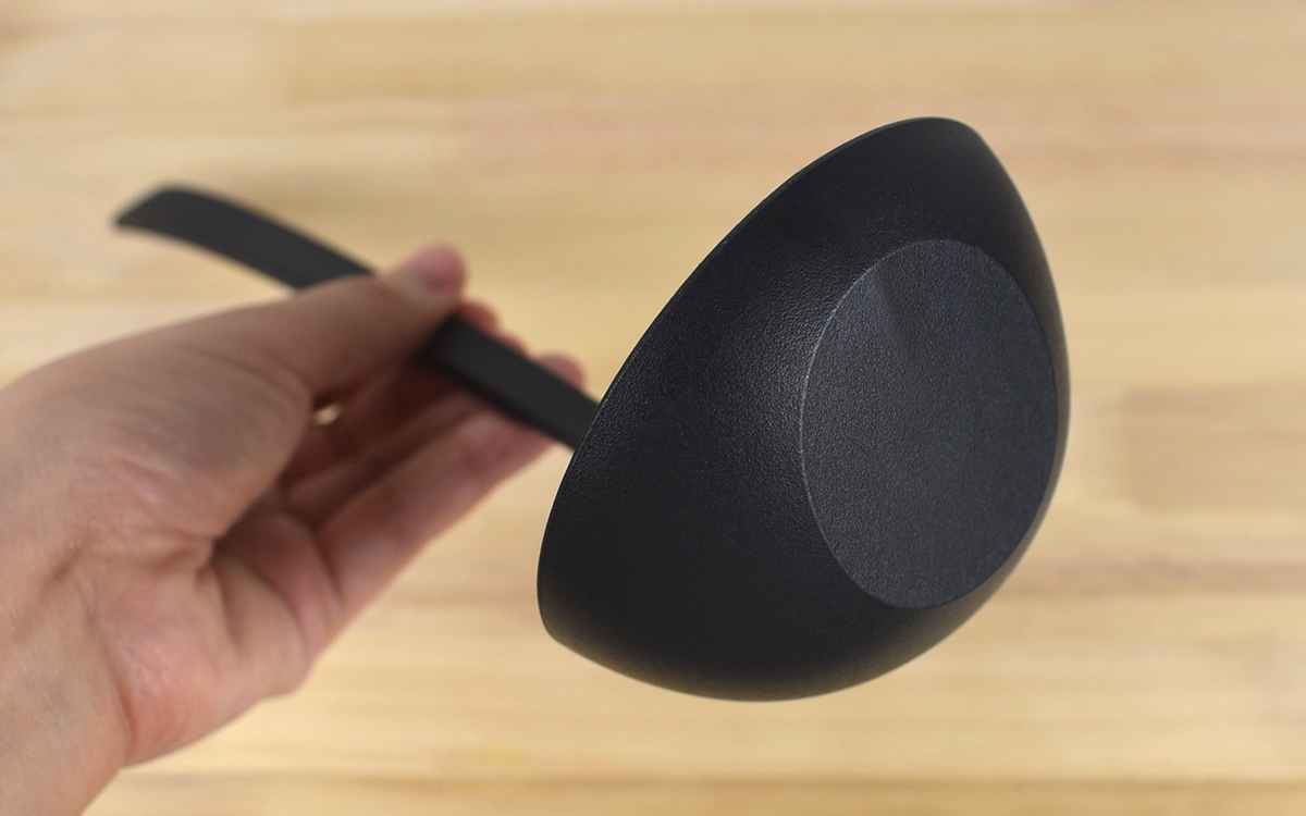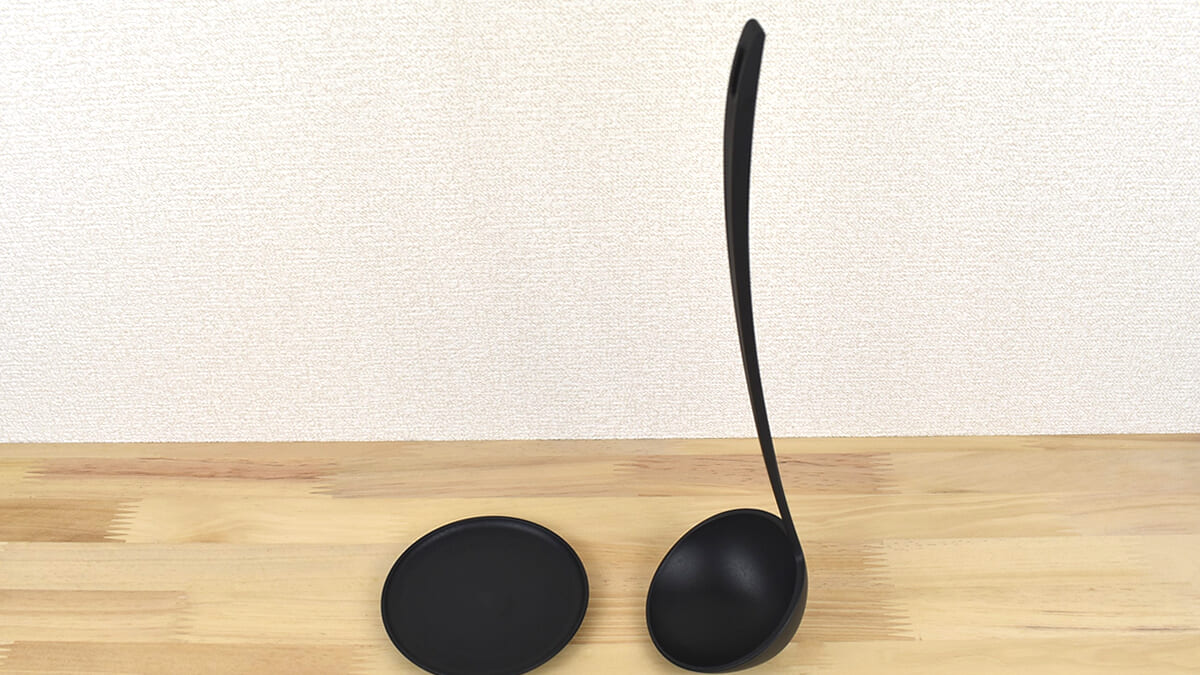 持ち手部分にはお玉を置く用の皿が付属。味見皿として使うこともでき、調理中にいちいち食器棚を開けずに済みます。実際にお玉を立てかけてみると、想像以上の安定感に驚き。倒れてくる気配もなく、集中して料理することができました。直置きするよりスッキリとした見た目で、キッチンの景観をきれいに保てるのも助かります。