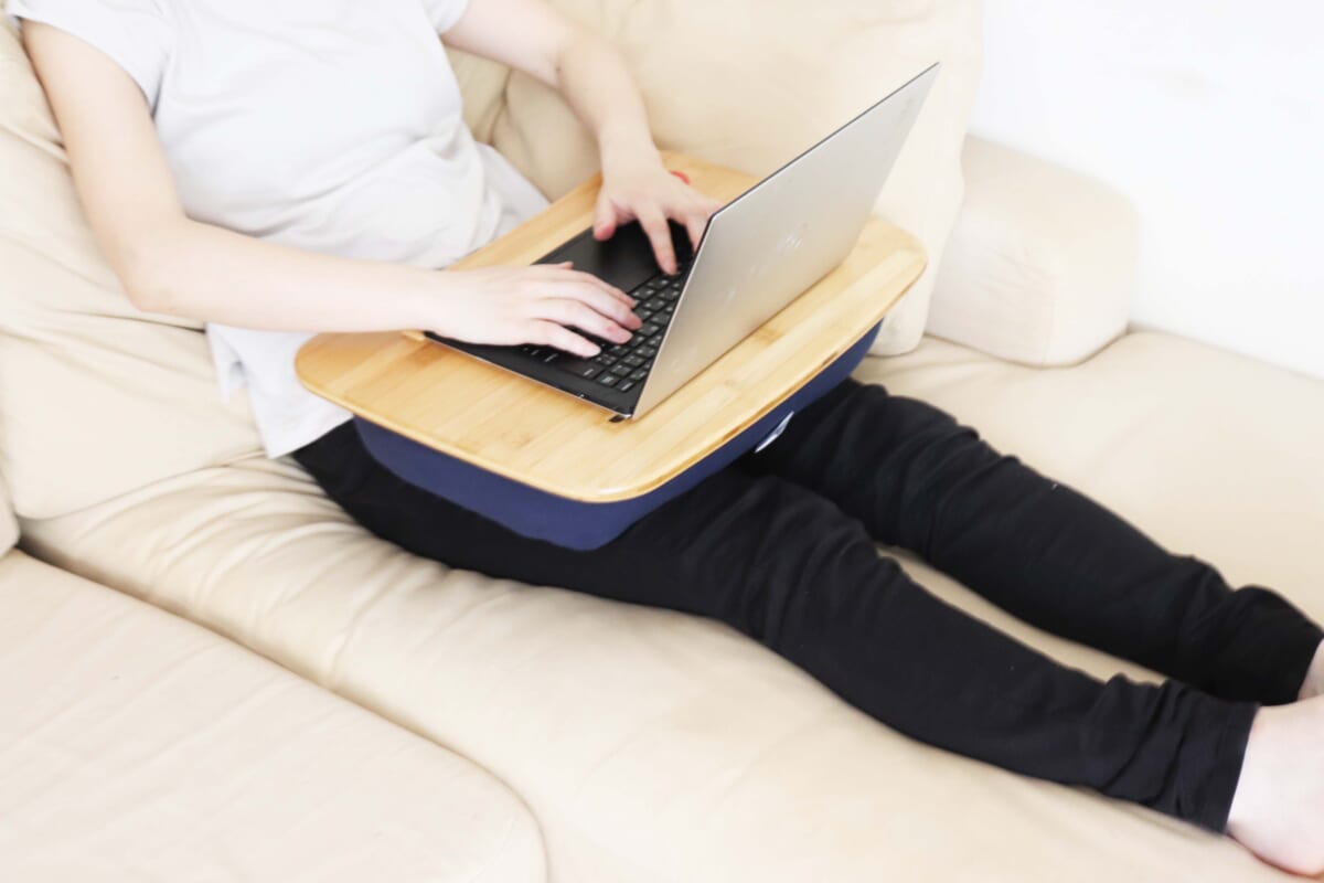 ヨギボーマックスに寝転がっているときは少し高さがあるので、マグカップを取るのが大変だなと試しにトレイボー2.0を横に置いてみたら、これまた完璧な高さ。ここまでセッティングしてしまうと完璧なダメ人間が完成し、仕事に戻れなくなってしまうので休日の快適な過ごし方としてどうぞ。