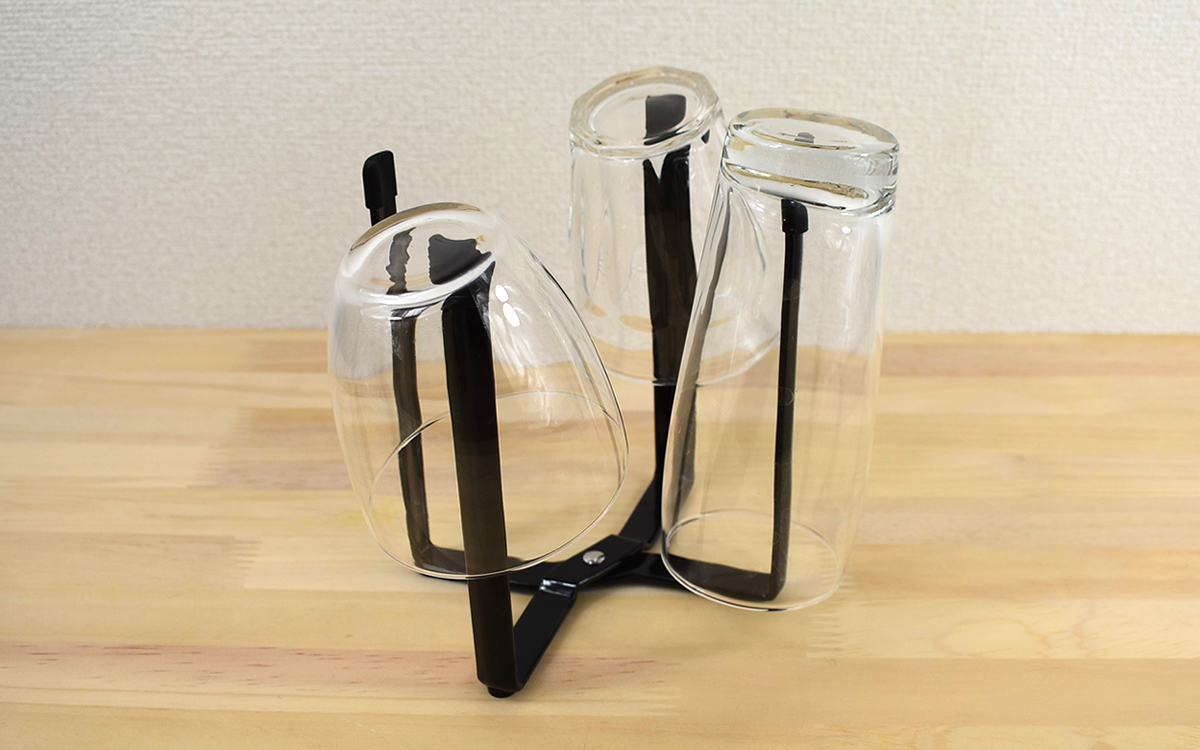 商品に袋をセットしてみたところ、思っていた以上に安定感抜群。袋だけでなくグラスも3つ引っ掛けてみましたが、特に倒れる心配もせずに済みました。実際に購入した人からも「程よいサイズ感でキッチンを全然圧迫しない」「狭いスペースで4つもグラスを保管できて助かりました!」「ポリ袋の代わりに保存袋をセットしても、余った食材を移し替えやすくて便利」など好評の声が相次いでいます。モノが溢れがちな人は、「ポリ袋エコホルダー」で使いやすいキッチンスペースを確保してみてはいかがでしょうか。