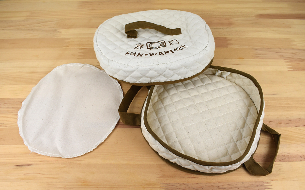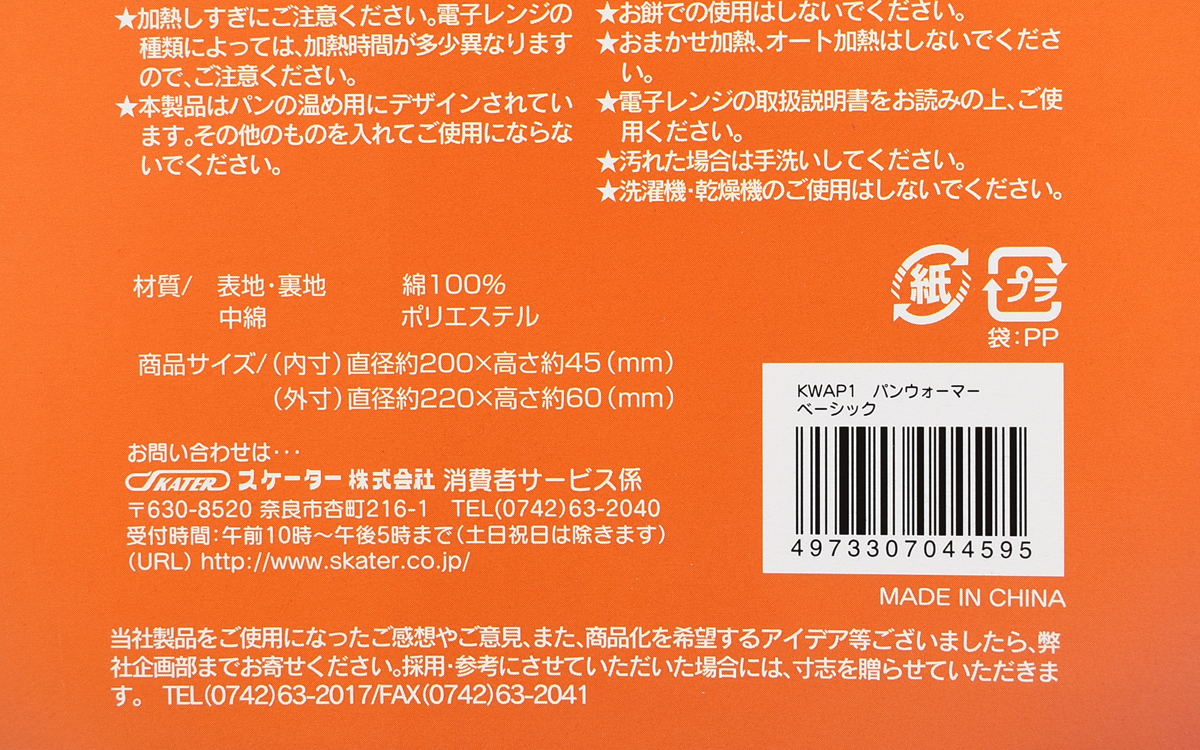 温め終わってレンジから取り出してみると、キルト地の素材がほんのり温まっているのを感じました。陶器やプラスチック製の素材が多いキッチングッズですが、同商品に使われているのは綿とポリエステル。これらの素材が、パンから出た余計な蒸気を吸収してくれる仕組みになっているんです。
