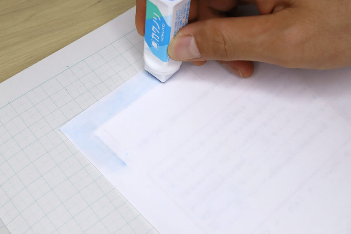 実際に使ってみても、カドまで過不足なく塗れるのは非常に快適。のりのはみ出しによってノートのページ同士まで貼り付いてしまって開かなくなる、という辛い経験をしたことのある人なら、選ぶべきはこれしかない。