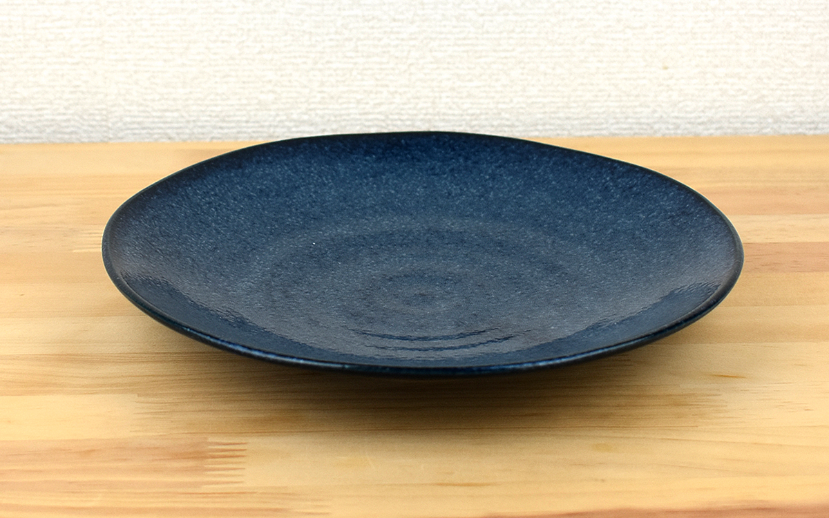 まずは「窯変紺」と呼ばれる大皿からチェック。23(幅)×23(奥行)×2.7cm(高さ)となかなかのサイズを誇りますが、実際に持ってみると見た目に反した“軽さ”に驚かされます。また、深みのある紺色がしっとりした高級感を醸し出しつつ、落ち着いた佇まいも感じさせてくれるのではないでしょうか。