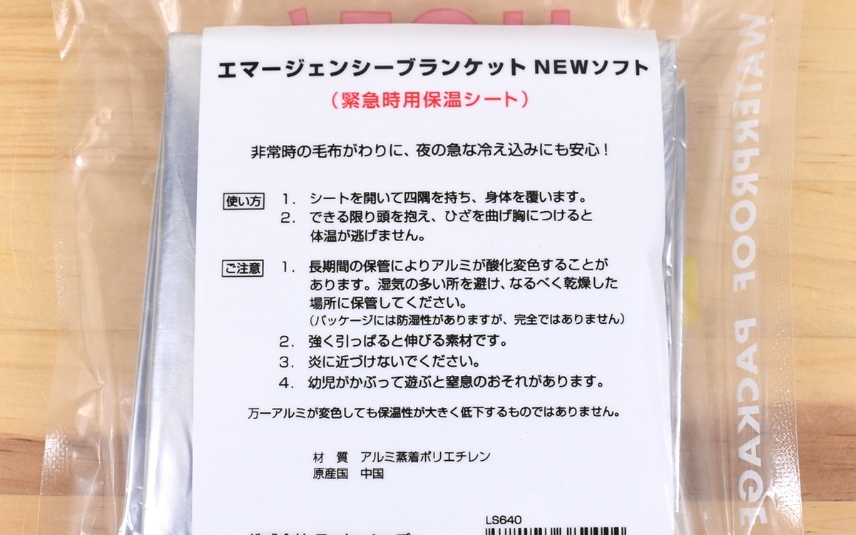 ●繰り返し使える静音タイプの保温シート「エマージェンシーブランケット Newソフト」(ラッキーシップ)