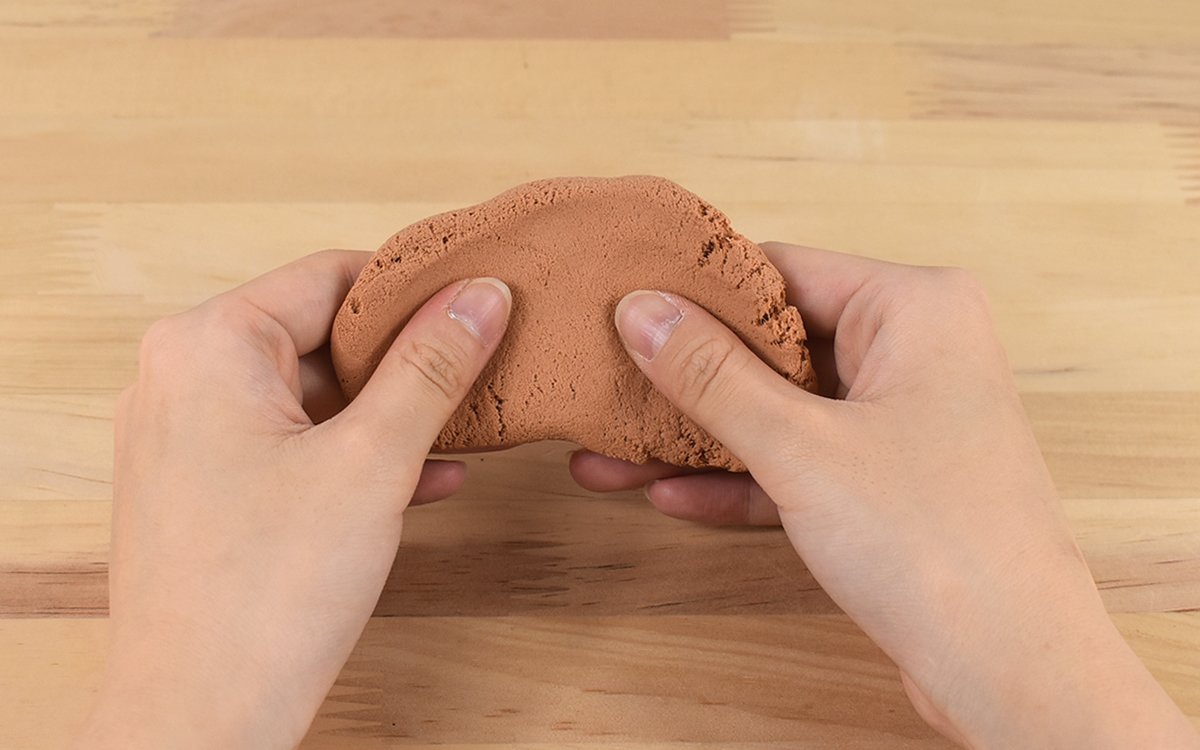 同商品の原料には木のおがくずと身体に害のない“のり(PVA)”が使用されていて、さっそく開封したところ木の香りがふわり。ねんど自体はしっとりしていますが手にベタつかず、テーブルなど周囲を汚す心配もありません。