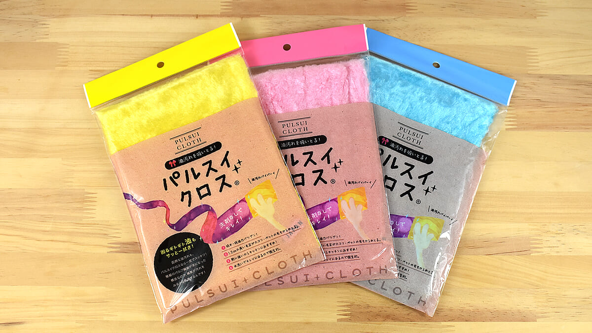 生活する上で毎日使うキッチンやリビングは、どうしてもホコリや汚れが溜まりがち。しつこい油汚れを力任せに拭き取ったり、汚れがこびりついたふきんを洗う手間など掃除は面倒なことが多いですよね。そんな悩みを解消してくれるに違いないと購入したのが、イエロー・ピンク・ブルーの3色がセットになった「パルスイクロス 3枚セット」(4360円/税込)。その実力をじっくり確かめていきましょう。
