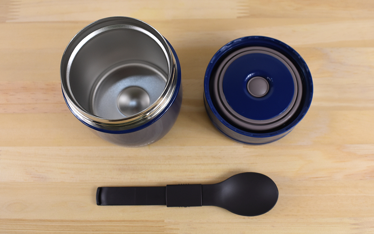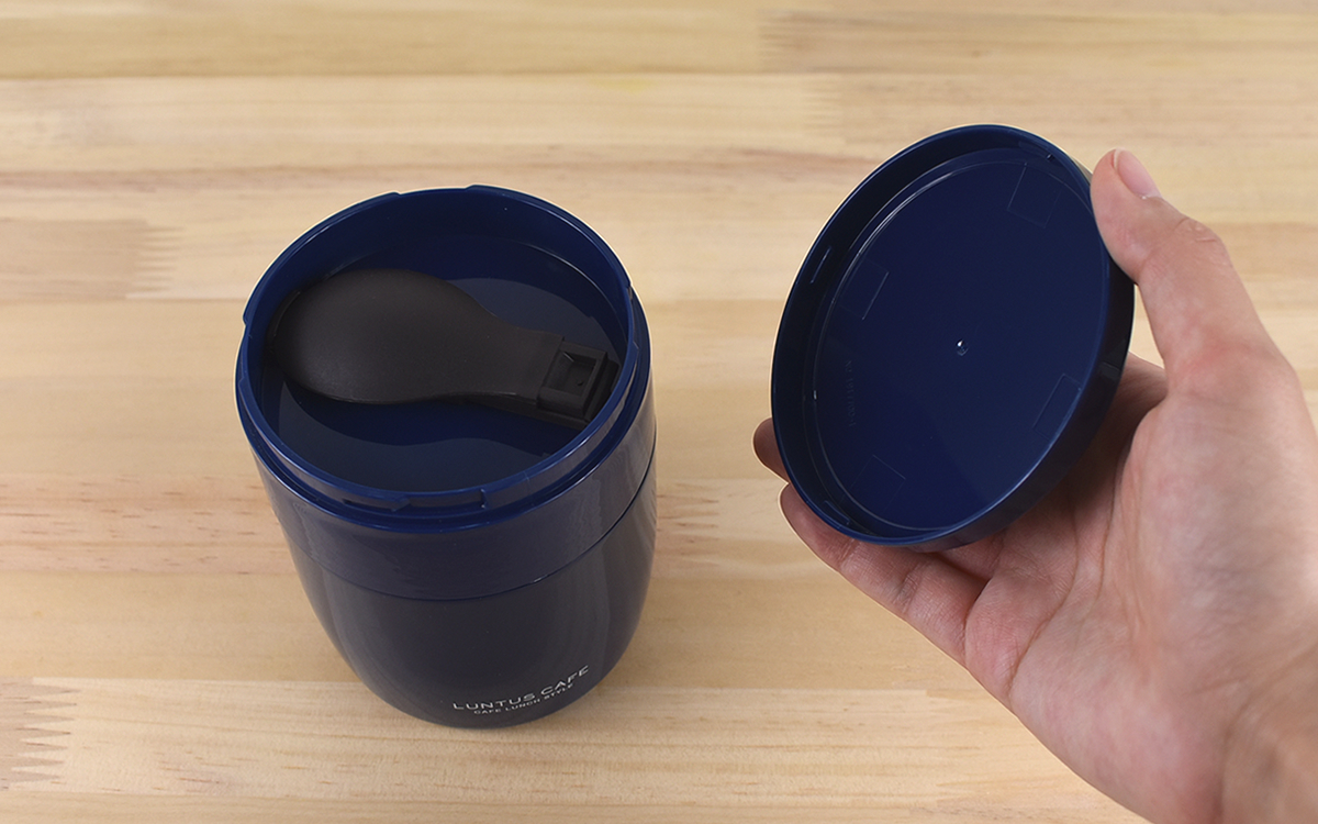 もう1つの特徴は「フタカバー」の中に折りたたみ式のスプーンが付属していること。スプーンを別で用意する必要がない上、フタの内部に収納できるためかさばりません。