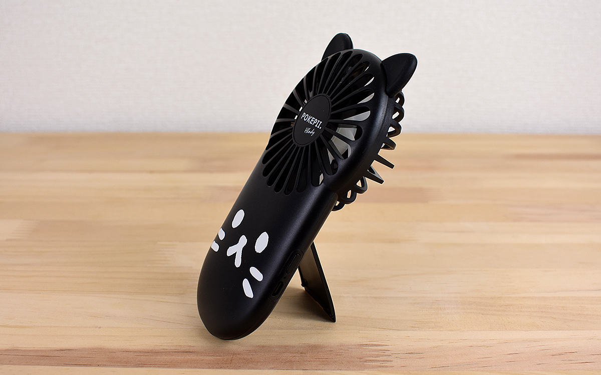 風量は3段階の切り替えが可能で、薄型ハンディファンながらパワーは強力。また、背面にはスタンドが収納されているので、デスクに据え置いて使用してもOKです。ちなみに電源ボタンを長押しするとLEDライトが点灯する機能も付いていますよ。