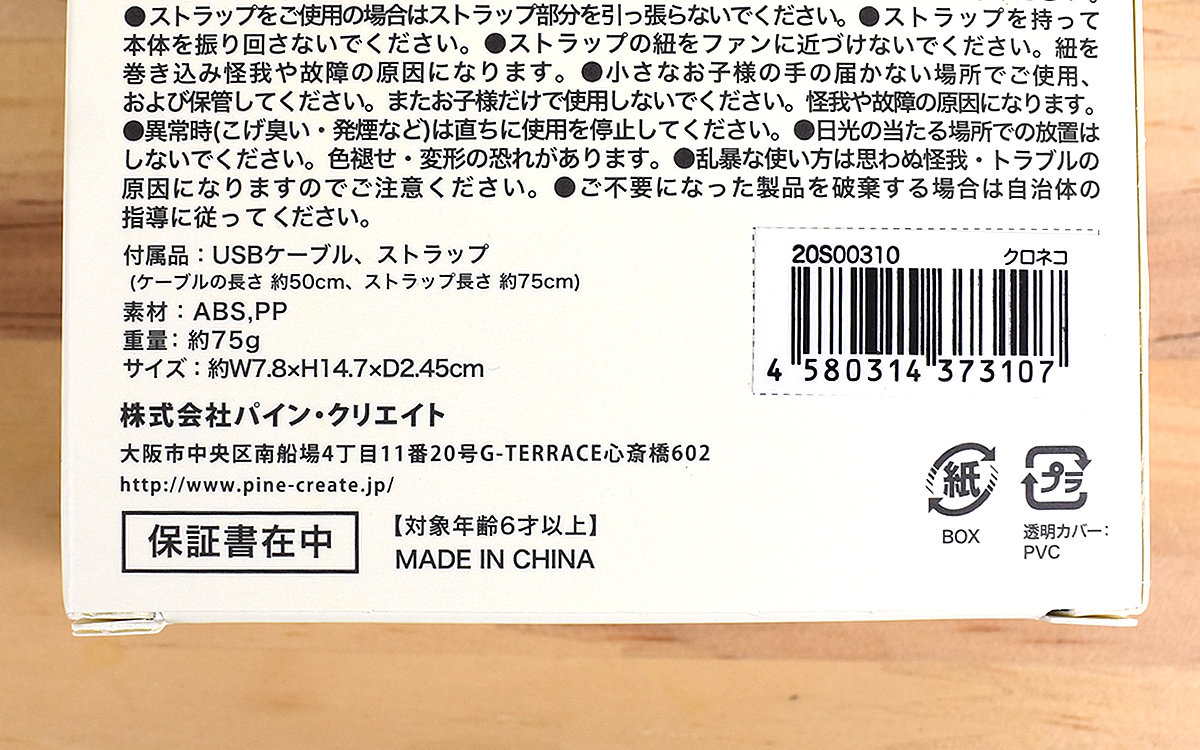 サイズは約78(幅)×147(高さ)×24.5mm(奥行)。USB充電式なので電池を入れる必要がなく、手にするとスマートフォンより軽い印象です。USBケーブルとともにストラップも付属しているので、首からぶら下げて持ち歩けばサっと使いやすいのではないでしょうか。