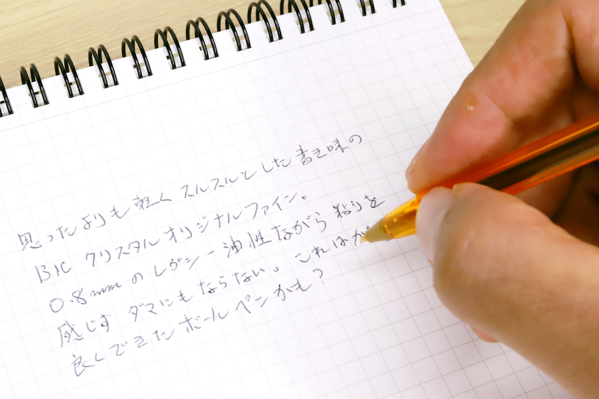 ただ、意外にも筆記感はけっこう軽く、スルスルに近い。あれ、低粘度じゃないBICのインクってこんなに軽かったっけ? と何度か確認してしまったほどだ。
