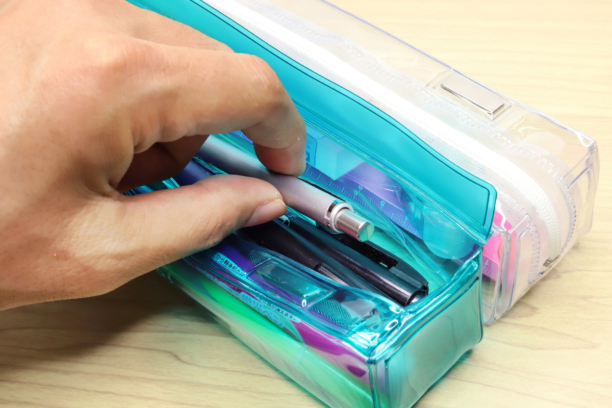 とは言っても、PVCのチープなツルツル感ってどうも子どもっぽくて持ちづらいな……と感じる人はいるだろう。透明ペンケースの優位性は理解できても、自分に似合うかどうかや好みの問題もあるので、導入にハードルが高いというのも理解できる。