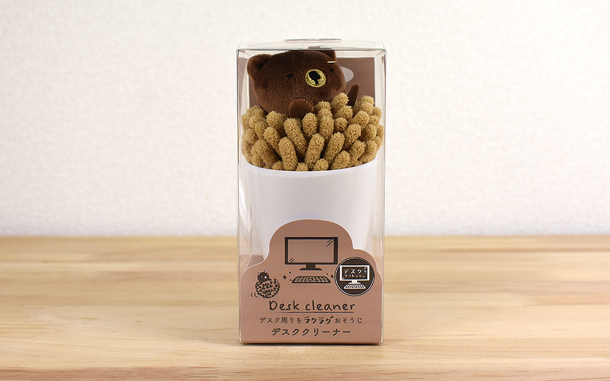 同商品はカップとクリーナーがセットになっていて、「ブラウンベア」の名前のとおりクリーナーの上部にはクマのマスコットが。どこかキョトンとした表情に癒され、心にゆとりをもたらしてくれます。ちなみにカップは手のひらに乗るほどコンパクトなサイズ。デスクの片隅に置いていても、掃除グッズには見えないのではないでしょうか。
