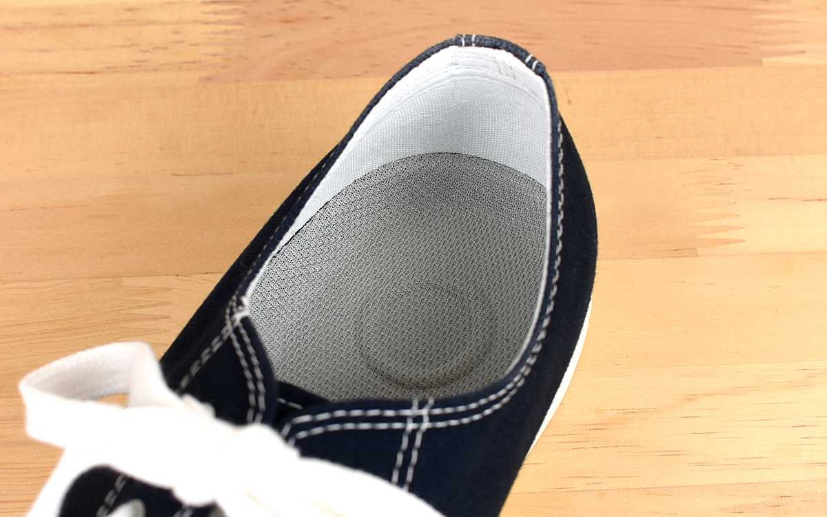 同商品は25.5~29.0cmまでのサイズ展開があり、私は26.5cmのネイビーカラーをセレクト。実際に手にしてみたところ従来のスニーカーと比べてインソールが厚く、指で押すと見た目以上にソフトな感触が伝わってきました。