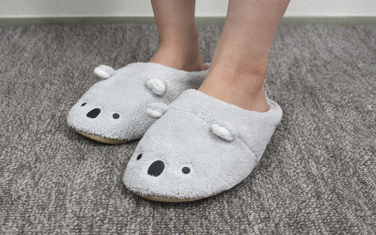 目覚めがすっきりする朝のシャワーや、1日の疲れを癒すバスタイム。浴室を出る際にしっかり体を拭いたつもりでも、足の裏はつい忘れがちですよね。バスマットを踏んだとしても完全に拭き取れるわけではなく、そのままスリッパを履くには抵抗感が……。そんなときに活躍してくれるのが、今回購入した「吸水アニマルスリッパ」(1980円/税込)です。どんな商品なのか、じっくりチェックしていきましょう。
