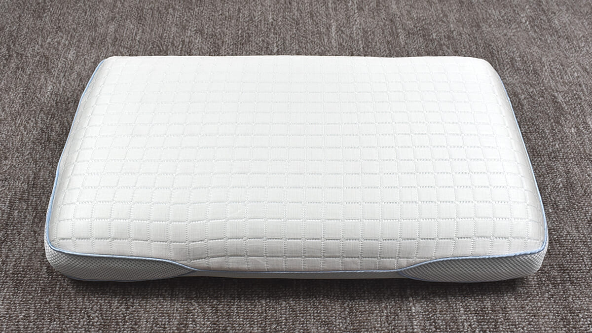 注目すべき点はダブルクール効果だけではありません。“低反発”の名に相応しく、ご覧のとおり弾力もばっちり。実際に頭を乗せてみたところ、どの向きになってもまくら全体が優しく包みこんでくれました。これならよく寝返りをするという人でも、じっくり体を休められるのではないでしょうか。