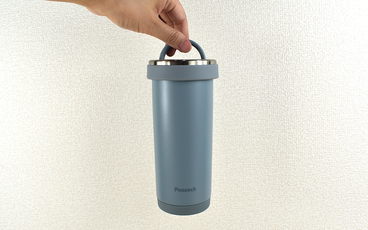 従来のタンブラーとは異なり、“せん”に取りつけられた半円状のハンドルが印象的な同商品。カバンの中に入れていても見つけやすく、指に引っかけることでパっと取り出すこともできました。ちなみに私がタンブラーに入れたのは温めたお茶。しばらくたってもホットな温度をキープしていたので、秋や冬にかけても飲料を美味しく持ち運ぶことができますよ。
