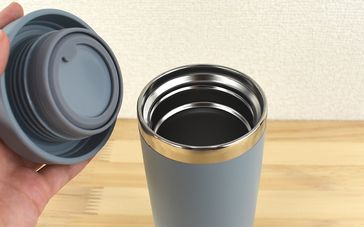 特徴の1つに開口部が広い“幅広口径”があり、飲料の移し替えや氷を投入する際に便利。口をつけてみたところ飲み口に段差がないため、なめらかな口当たりで違和感を感じさせません。