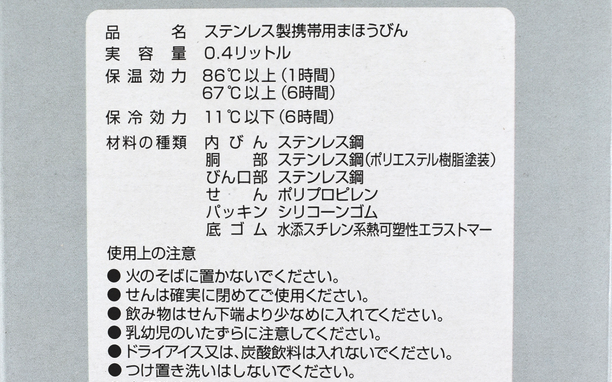 ●ステンレス製真空2重構造を採用した「タンブラーボトル」(ピーコック魔法瓶工業)