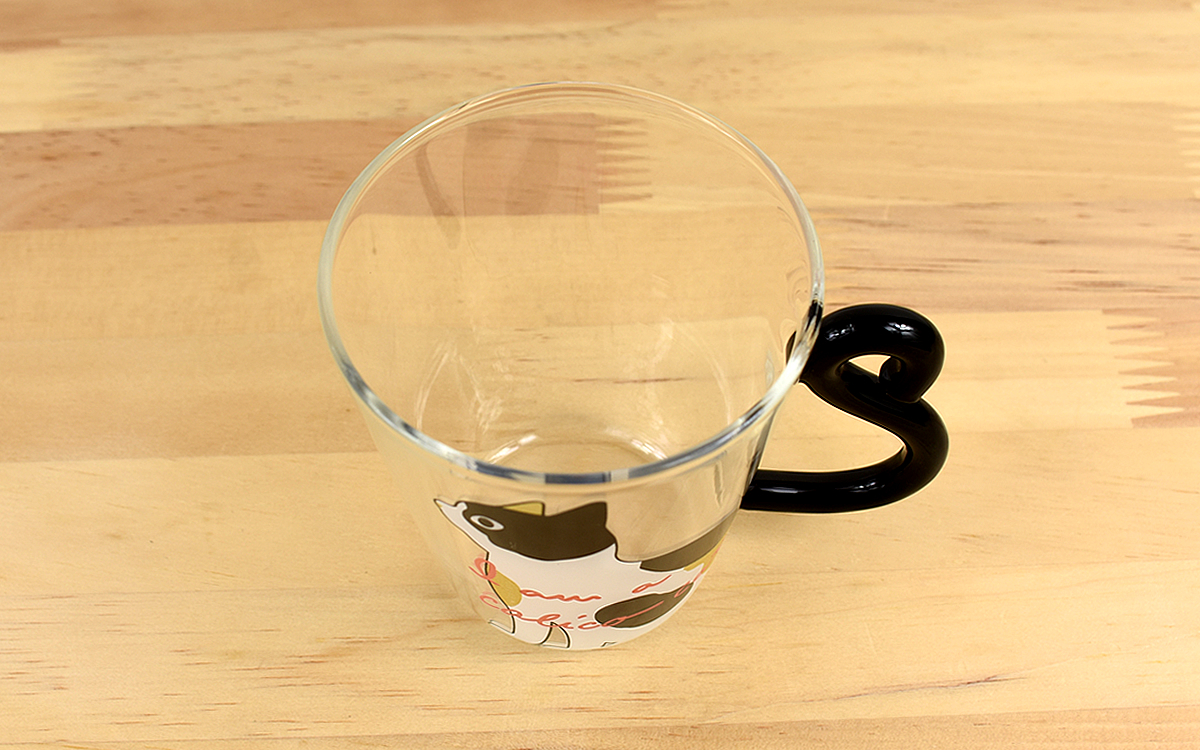 透明の耐熱ガラスにプリントされたミケネコが可愛らしく、お茶を注いでもそのアピール力は変わらず。従来のマグとはひと味違う雰囲気を醸し出していて、喉を潤すだけでなく“目で見る楽しさ”も存分に味わわせてくれました。