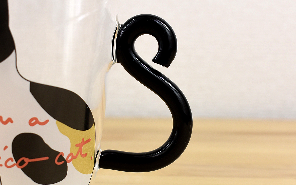 マグカップにコーヒーやジュースなどの飲み物を注ぎ、ブレイクタイムを楽しむ人は多いと思います。デザイン・柄にこだわる私も、キュートな見た目に惹かれてニトリの「耐熱ガラスマグ ミケネコ」(399円/税込)をゲット。持ち手が“しっぽ”になっているおしゃれな商品ですよ。