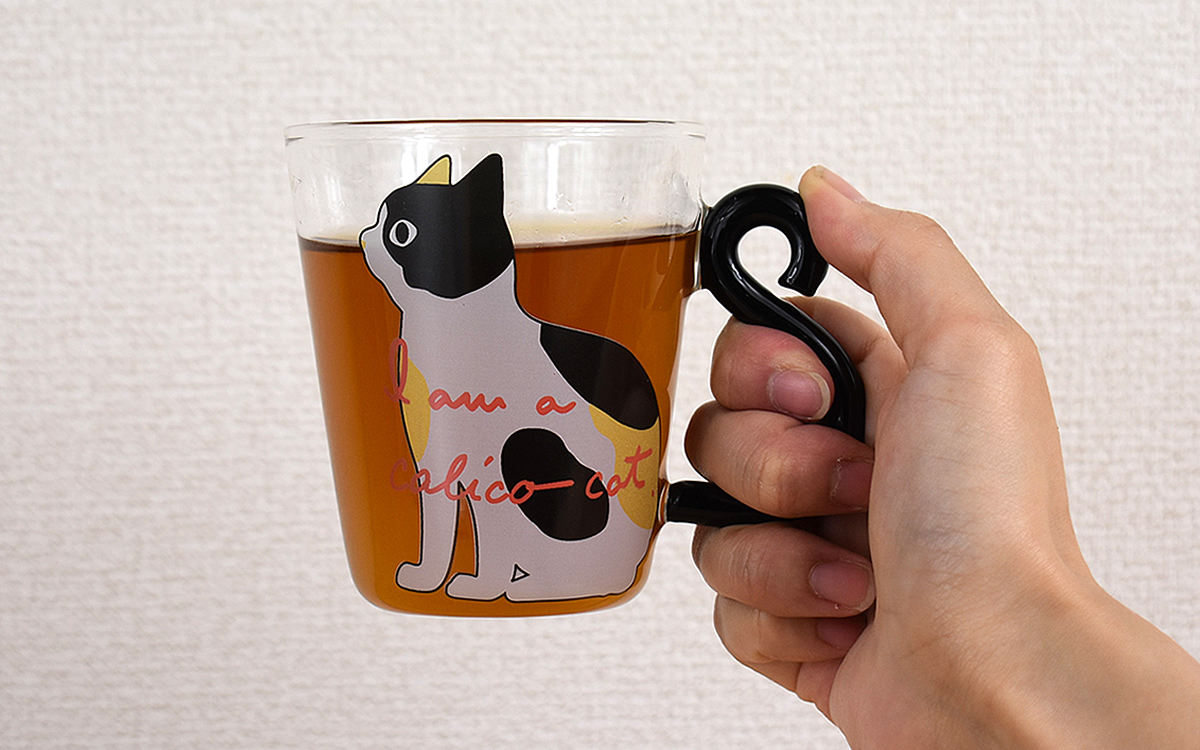 お茶を注いだ状態でマグを持ち上げてみたところ、持ち手のかたちが握った指にフィット。気のせいでしょうか、まるでミケネコと一緒にティータイムを堪能しているような感覚が…。なお熱湯用のマグとはいえ、ガス火・オーブン・電子レンジは使用不可なので注意してくださいね。