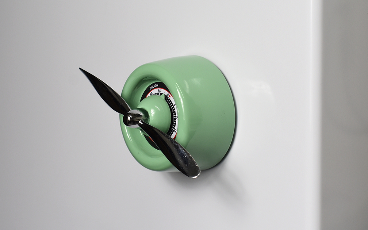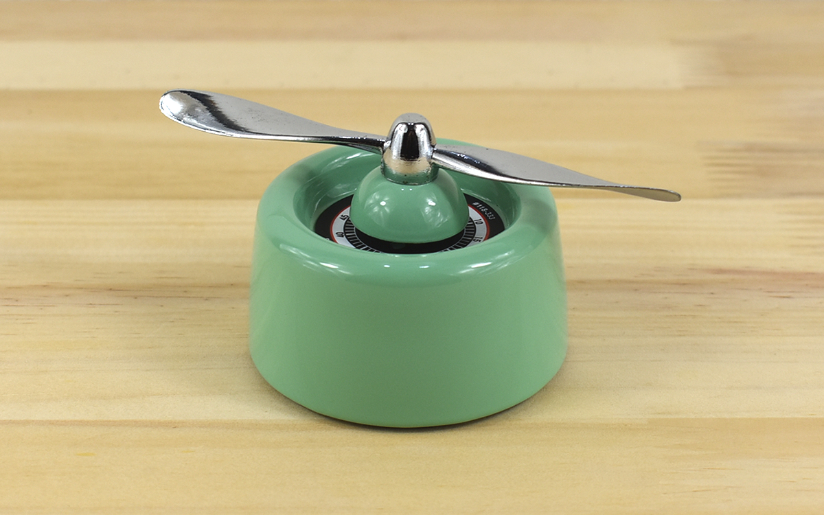 同商品は50(高さ)×110(幅)×65mm(直径)と手のひらに乗るコンパクトサイズで、最大設定時間は55分。プロペラ飛行機の羽を彷彿とさせつつ、コックピットのメーターを思わせるタイマー部分のデザインにも目を惹きつけられます。
