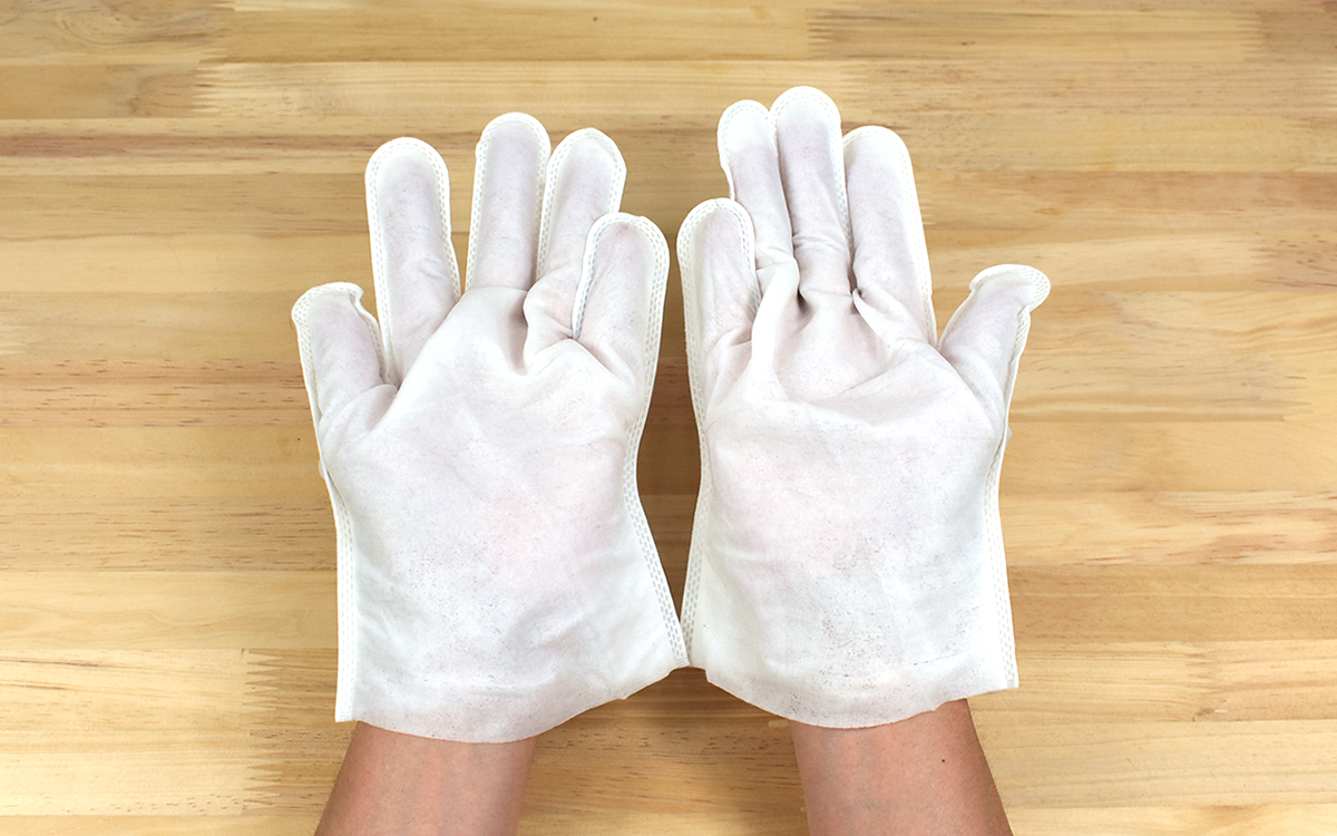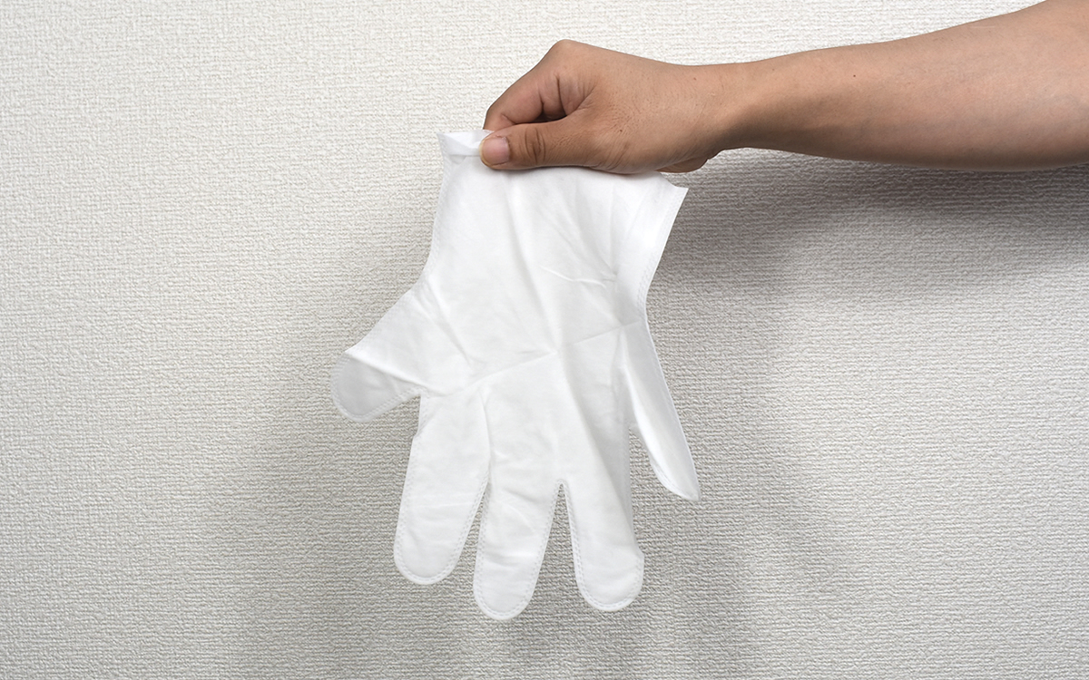一目、従来の布手袋と同じような同商品。手に持ってみてわかりましたが、しっとりと濡れていてフルーティーな香りもふわり。匂いがキツすぎることはなく、むしろ清涼感に包み込まれるような印象を受けます。