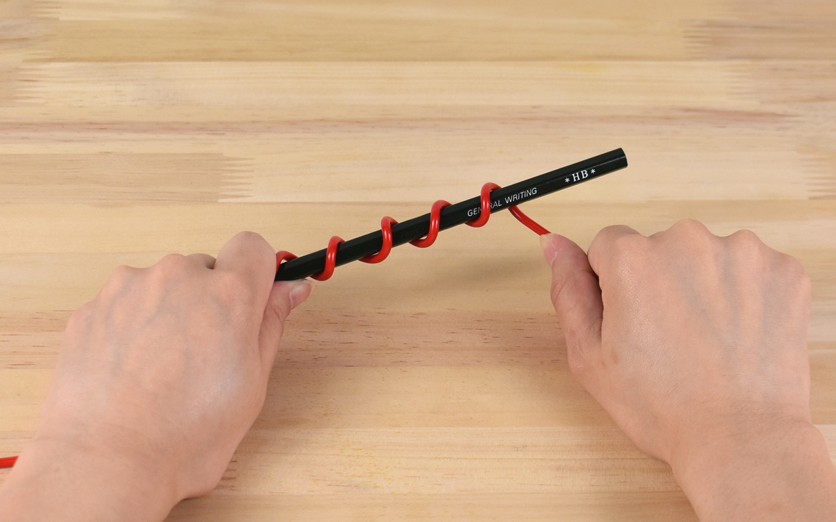 試しに鉛筆に巻きつけてみたところ、工具を使うことなく手の力だけでグルグルと“とぐろ”状に。これなら頭の中でイメージするかたちが複雑でも、思いどおりの造形が楽しめるのではないでしょうか。