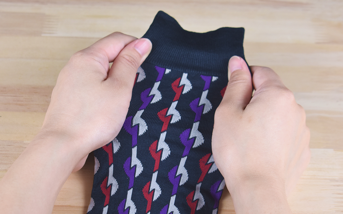 25-27.5cmサイズの同商品は、長さもたっぷり30cm。高い技術をほこる国内工場で編み上げられていて、下の画像のとおり薄手の生地ながらしっかり伸縮性が備わっています。