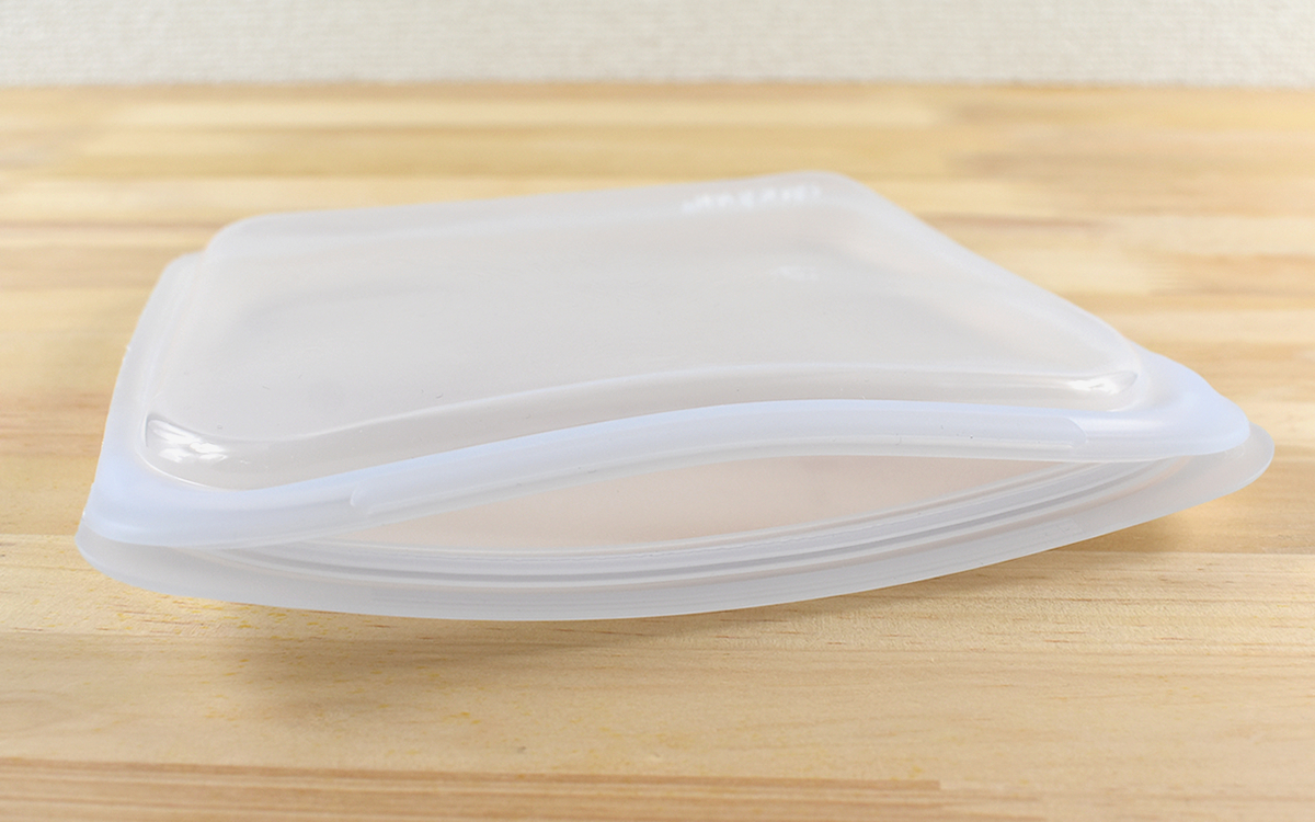 同商品のサイズは18.5(縦)×19.3(横)×2.6cm(マチ)。今回セレクトしたクリアタイプの他にも、ラズベリー、アクア、ブルーベリー、パープル、イエローシーなどの豊富なカラーバリエーションが展開されています。保存容器におしゃれ感を求めているなら、たとえばカラーを統一せずにランダムで複数購入してみると面白いかも。