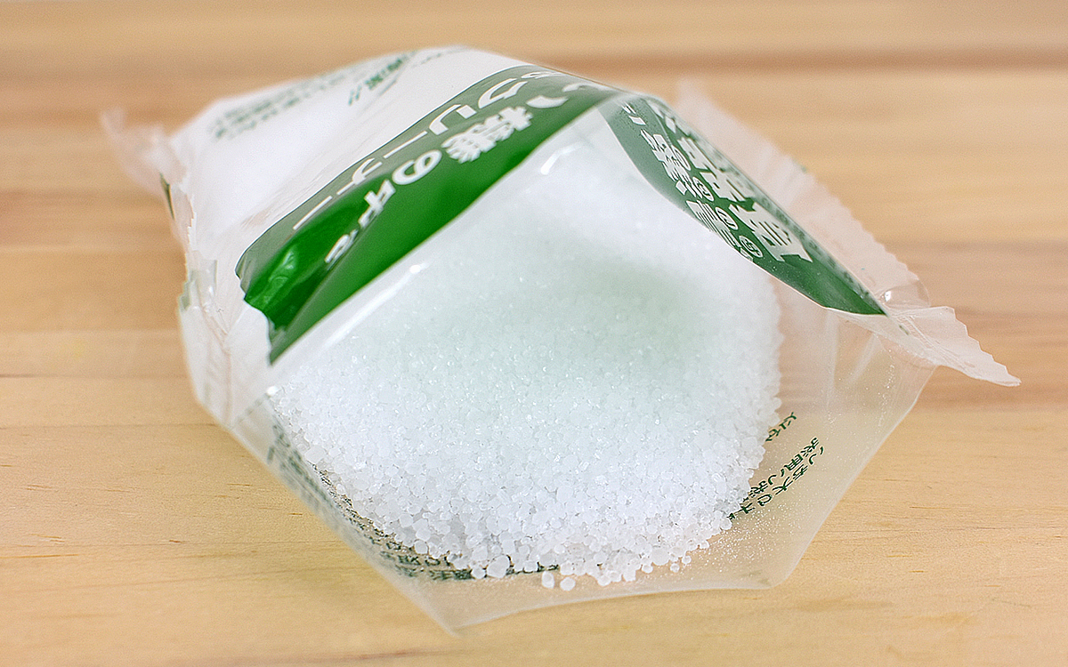 さっそく1袋開封してみましたが、洗浄剤は粉末ではなく粒のかたちがはっきりした顆粒状。食品添加物原料100%ということもあり、洗浄剤特有の鼻をつくようなニオイは一切しません。
