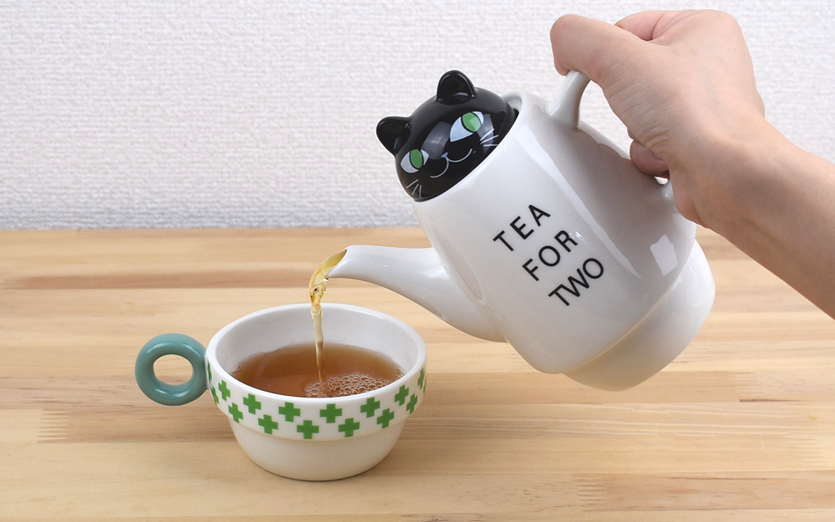 せとものの街として有名な愛知県瀬戸市の陶磁器メーカーで、マグカップやグラスなどを取り扱う愛龍社。同社の「アニマルティーフォーツー」は、ティーポットと2つのカップがセットになった商品です。“SHINZI KATOH DESIGN”によるティーフォーツーは人気が高く、ネット上でも「重ねた状態で収納できるから便利だね」「ちょこんと乗ったネコの顔がかわいい!」と大好評。どのようなアイテムなのか、じっくりチェックしていきましょう。