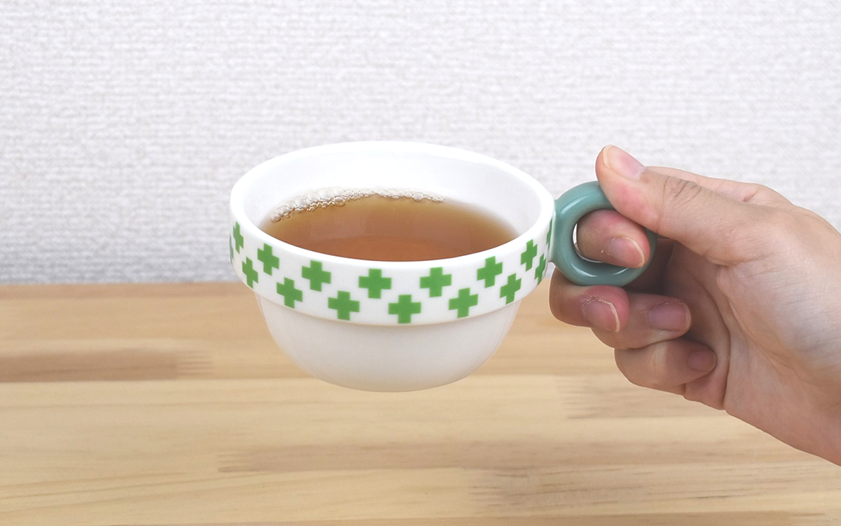カップも使いやすさはバッチリで、持ち手部分のすぐ下の段差部分にご注目。人差し指を通して持ち上げても中指とカップの間に余裕が生まれるため、ティーカップにありがちな“窮屈さ”を感じずに済みますよ。