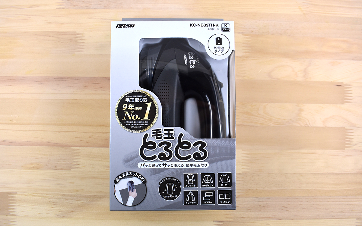冬物の服を着ていると、毛玉に悩まされることも多くなりますよね。セーターやカーディガン、マフラーがいつの間にか毛玉だらけになっていた…なんてことも。そんな時に東急ハンズで発見したのが「毛玉とるとる」(2178円/税込)です。今回はブラックとグレーのカラーリングをチョイスしました。