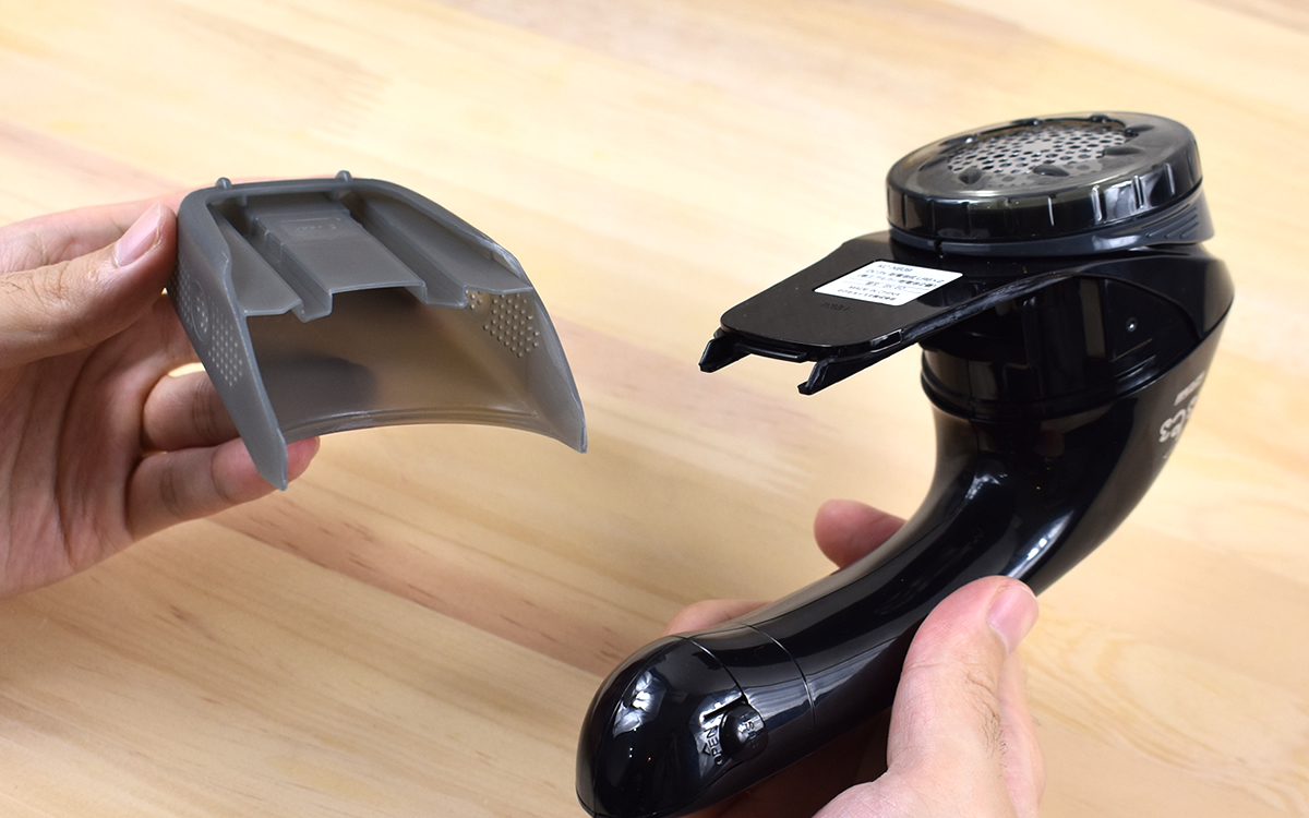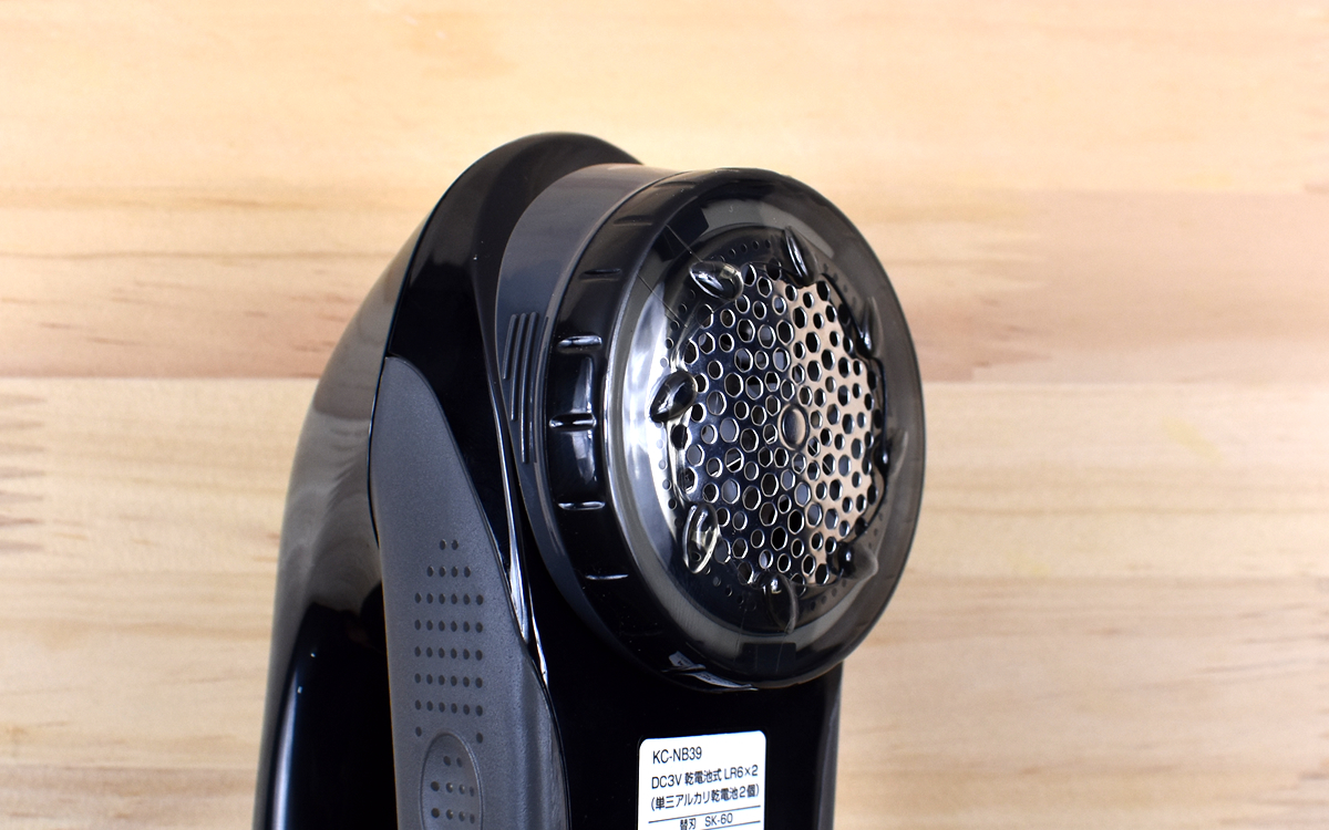 一見普通の毛玉取り器と大きな差はないように見えますが、同商品最大の特徴は“ふわふわガード”という機能です。刃の周りをよく見てみると、小さな突起が等間隔で刃を囲んでいました。この突起が刃と生地の間に隙間を作り、服の質感を損なうことなく毛玉をカットできるそう。