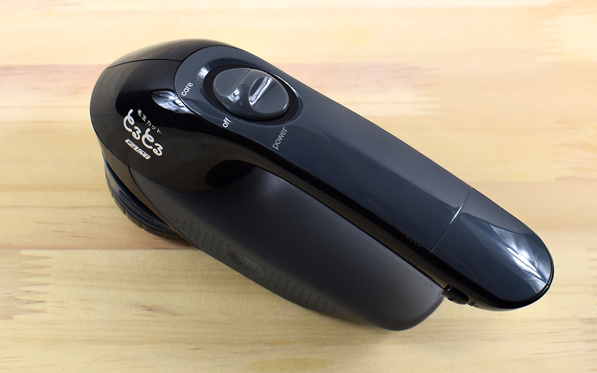 カットする時のモードは2つあり、スイッチで簡単に切り替えが可能。通常時は「power」、おしゃれ着や着衣状態で毛玉をカットする時は「care」を選択してください。