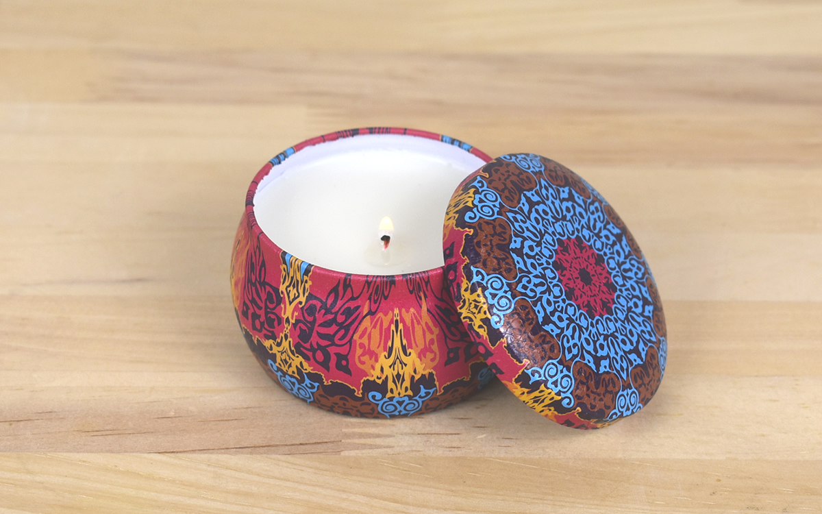 異国情緒あふれるデザインが目を引く同商品。緻密な描き込みや、鮮やかな色づかいが美しさを際立たせます。これならアロマキャンドルとしての役目を終えても、インテリアとしてリビングや寝室に飾っておけるのではないでしょうか。