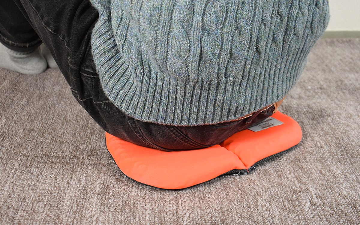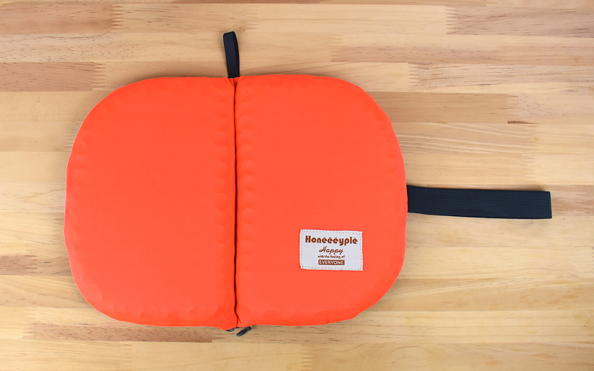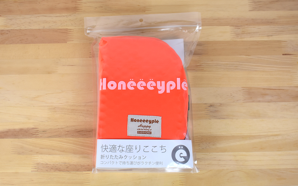 仕事がテレワークになって以降、プライベートタイムも含めてイスに座っている時間が長くなった私。以前から使用していたクッションがぺたんこになり、時間が経つと腰に痛みを感じるようになってしまいました。そこで新しいものに買い換えようとロフトで販売されている商品をチェック。「折り畳みクッション ハニープル」(1980円/税込)を発見し、カーキやグレーなどのカラーバリエーションからオレンジタイプを購入してみました。
