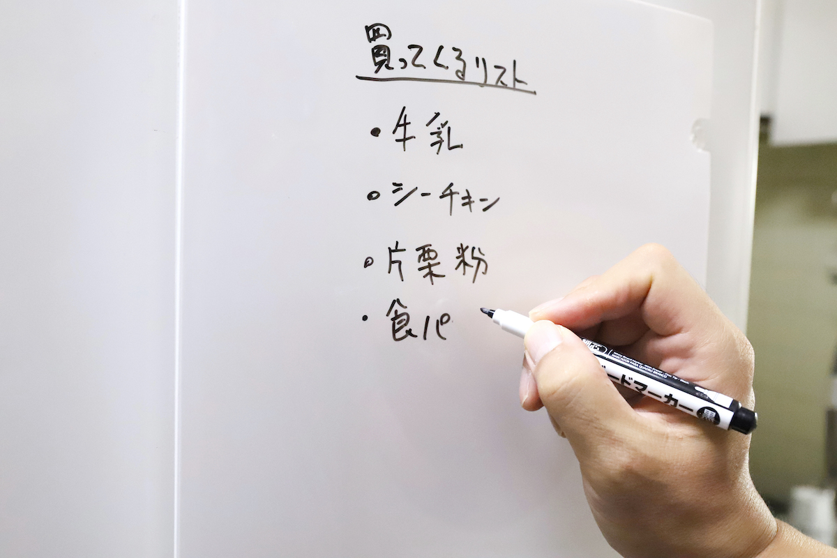 やはり、伝達事項は明文化するのがベスト。家族が自宅にずっといるのであれば、家庭内連絡用にホワイトボードを使うのは充分に実用的ではないか、という流れである。
