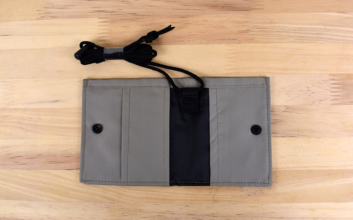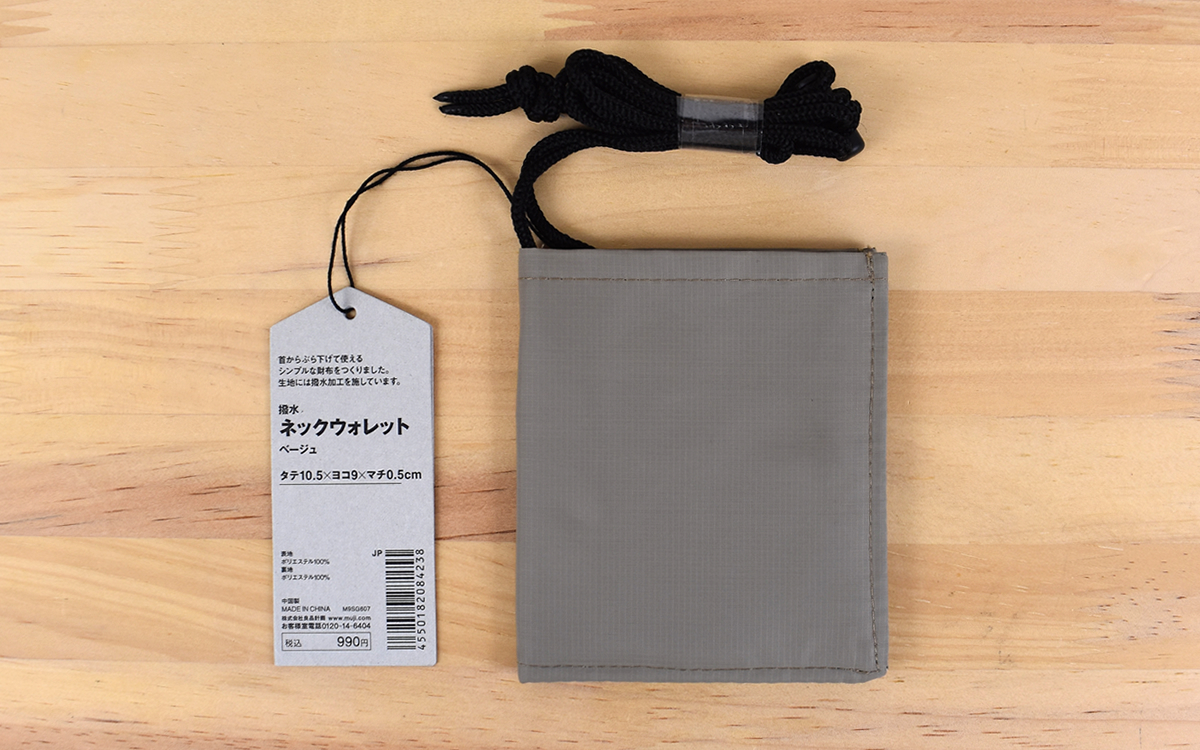 ●首からぶら下げて使用する「撥水ネックウォレット」(無印良品)
